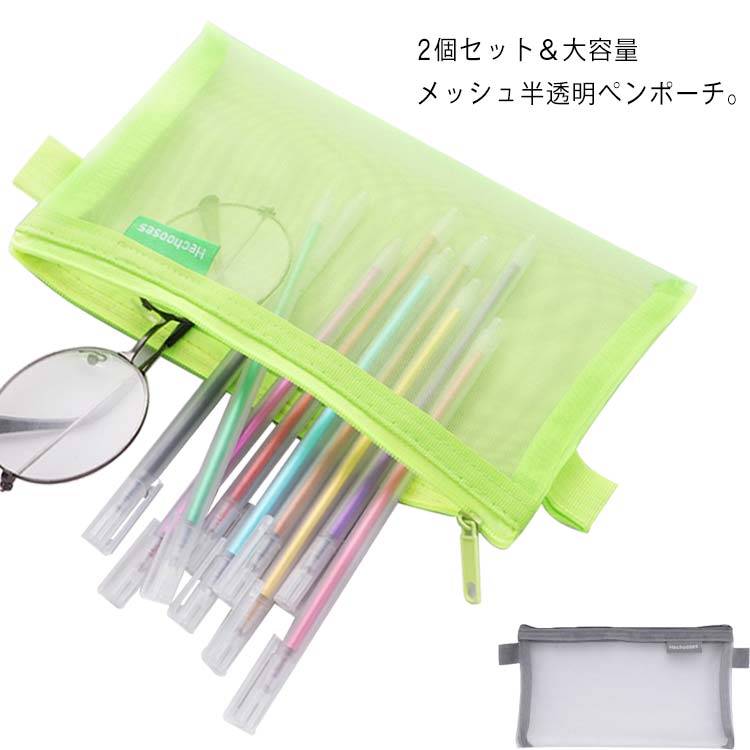 ペンポーチ ペンケース 透明 メッシュ 筆入れ 筆箱 大容量 文房具 シンプル おしゃれ 小物入れ 収納ポーチ 軽量 小学生 中学生 高校生 大学生 事務用品 オフィス用品