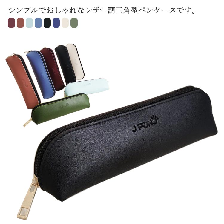 ペンケース スリム 三角 筆箱 レザー調 筆入れ ペンポーチ シンプル 高級感 おしゃれ 文房具 筆記用具 中学生 高校生 大学生 収納ケース 大容量 事務用品 オフィス用品 男女兼用