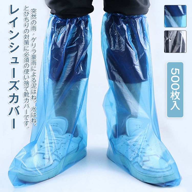 シューズカバー 使い捨て 500枚 靴カバー 防水 ロング丈 レイングッズ 旅行用 レインシューズカバー 子供用 厚い 自転車 通勤 上質 2color レインシューズ カバー 長靴 男女兼用 砂遊び