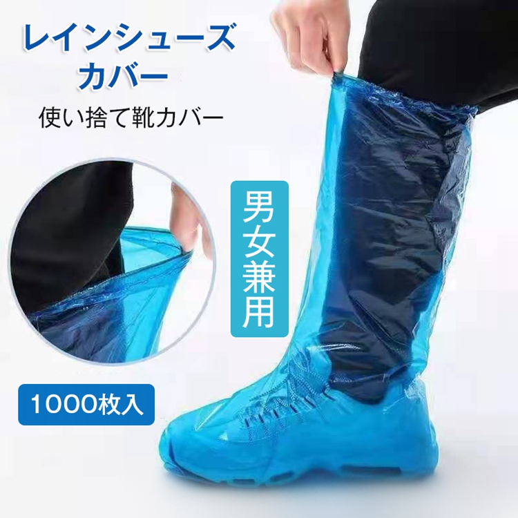 シューズカバー 使い捨て 1000枚 靴カバー 防水 レディース メンズ 男女兼用 ロング丈 子供 自転車 通勤 アウトドア レイングッズ 旅行用 レインシューズ カバー 砂遊び 長靴 伸縮 携帯