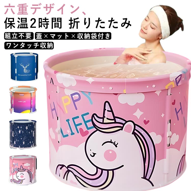 組立不要 浴槽 折りたたみ浴槽 折りたたみバスタブ 折りたたみ バスタブ ポータブル 蓋付き 大人 防災 1秒で開く 自宅 ビニール浴槽 アウトドア 保温