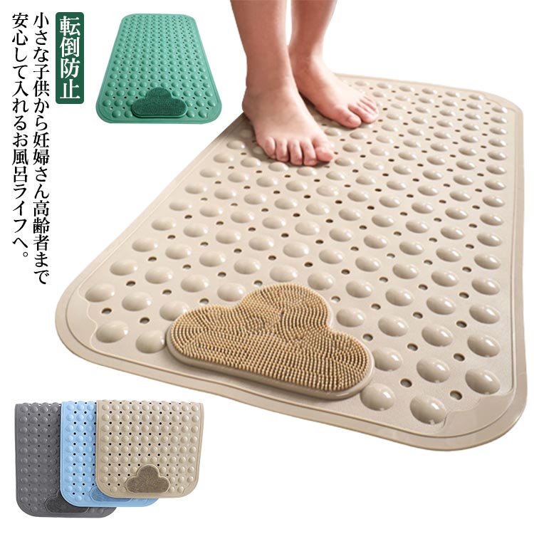 足洗いブラシ付き 介護用品 滑り止めマット フットブラシ バスマット 浴槽 吸着マット 転倒防止 子ども 妊娠中 妊婦 洗い場 転倒防止 吸盤付き 40*70cm バス用品 足裏マッサージ すべり止め