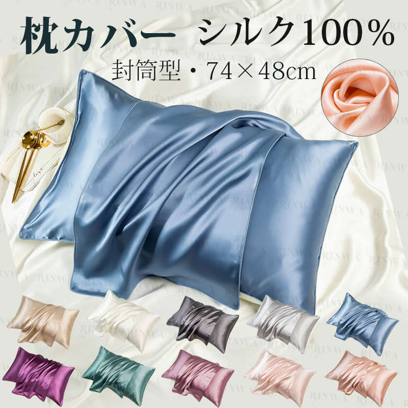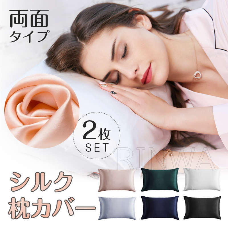 枕カバー シルク 封筒型 2枚 両面 まくらカバー フェイクシルク マクラカバー 枕カバー 乾燥対策 肌ケア 枕 カバー 保温 冷感 絹 寝具 滑らか オールシーズン 一年中 洗える 無地 ギフト お