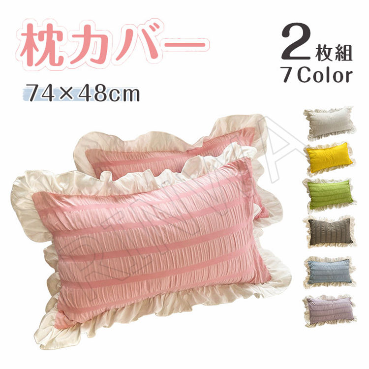 枕カバー 2枚セット まくらカバー フリル マクラカバー オールシーズン おしゃれ シンプル 寝具 74×48