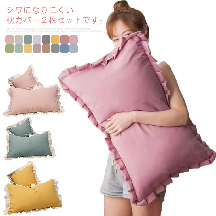 枕カバー 2枚セット まくらカバー フリル マクラカバー オールシーズン おしゃれ シンプル 寝具 74×48cm