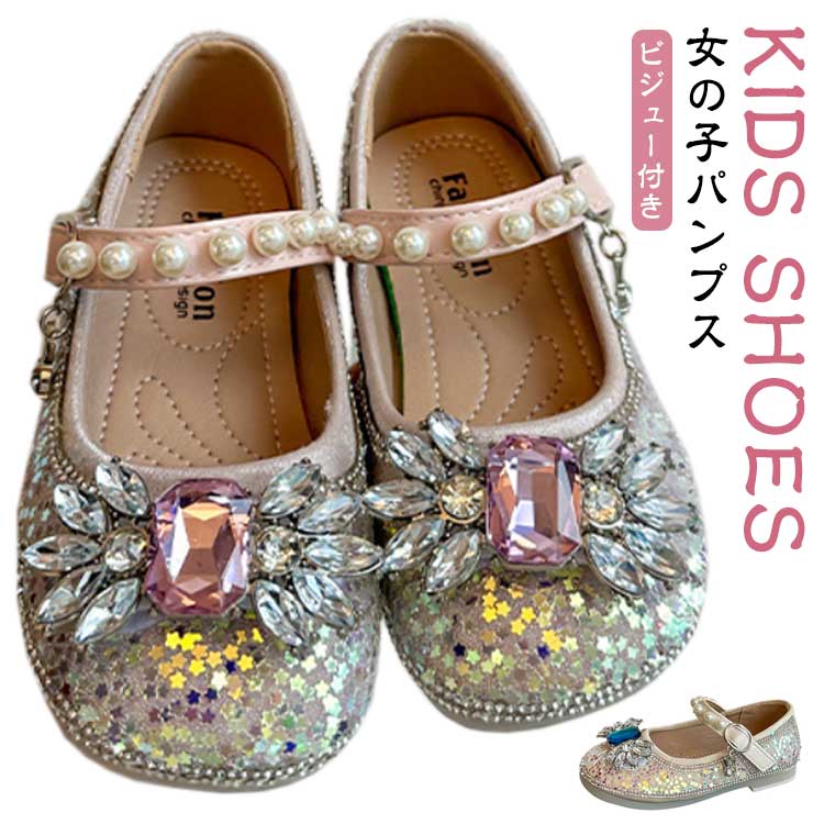 パンプス ビジュー付き スパンコール 結婚式 パンプス フラットシューズ フォーマルシューズ 女の子 子供靴 子供シューズ 子供 フォーマル靴 パンプス 子供 フラワーガール 入学式 発表会 キラキラ