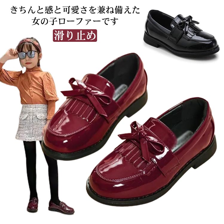 フォーマルシューズ 可愛い リボン キッズ 結婚式 タッセル付き 女の子 エナメル調 柔らかい 子供靴 通学 発表会 入園式 卒園式 入学式 卒業式 滑り止め 通園 お受験 ドレスシューズ ローファー