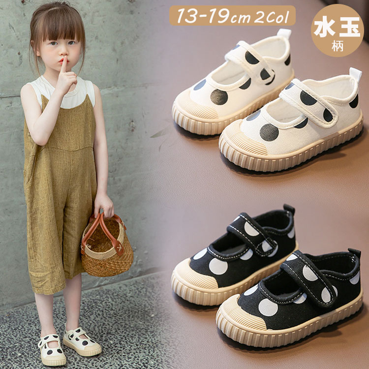 通気性が優れた綿混紡素材スニーカー 履き脱げ易いマジックテープ お洒落な水玉柄 つま先保護 滑り止め
