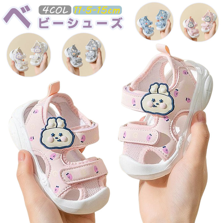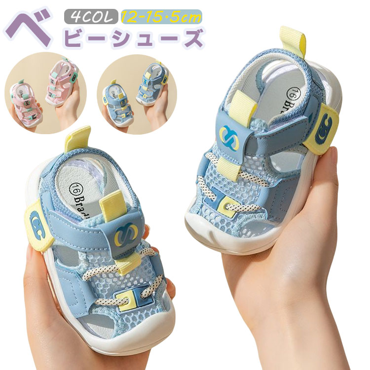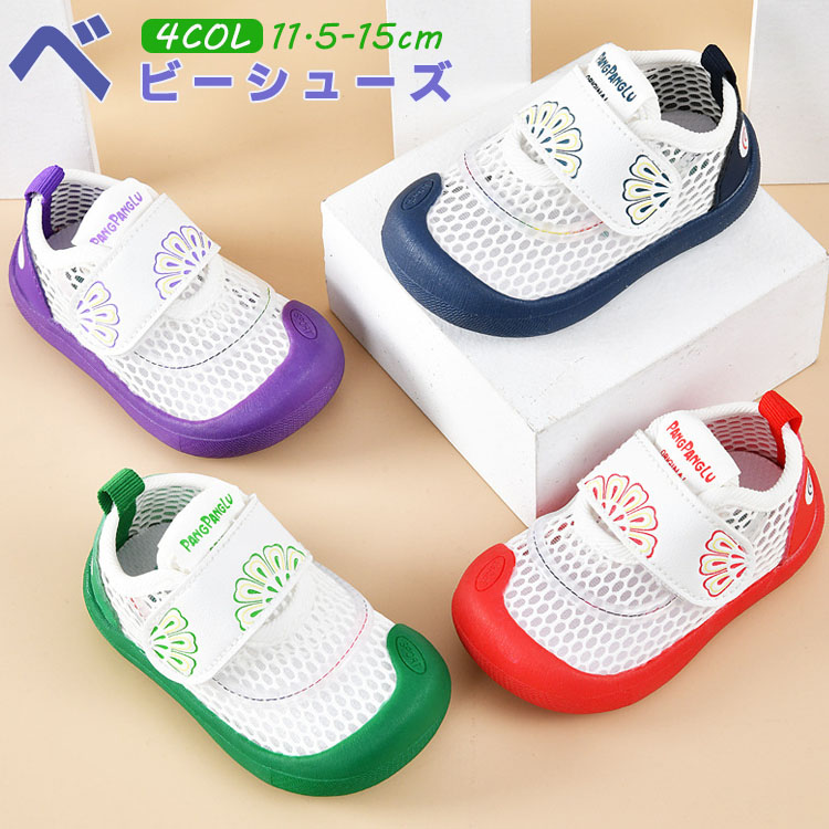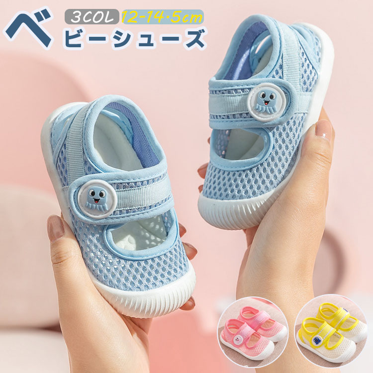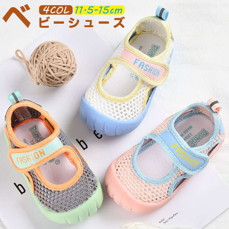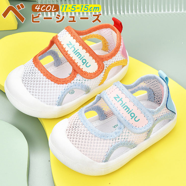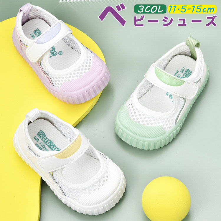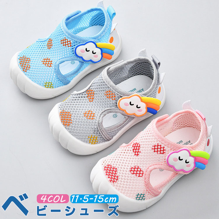 ベビーサンダル 通気性が優れたメッシュ素材スニーカー 可愛い柄 履き脱げ易い マジックテープ つま先保護 滑り止め ホワイト グリーン ピンク 14cm 14.5cm 15cm