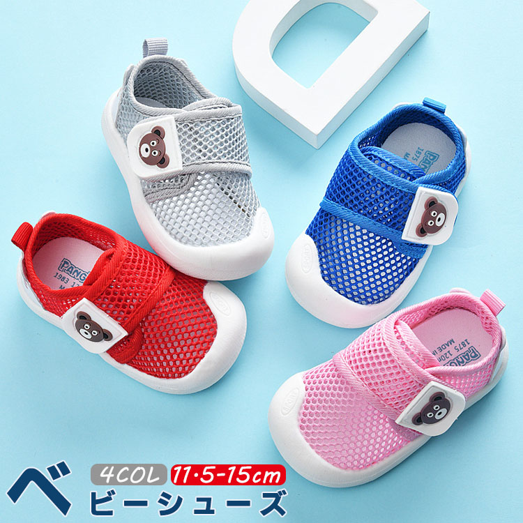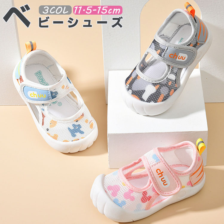 通気性が優れたメッシュ素材スニーカー 可愛い柄 履き脱げ易い マジックテープ つま先保護 滑り止め ホワイト グレー ピンク 11.5cm 12cm 12.5cm 13cm 13.5cm 14cm 1