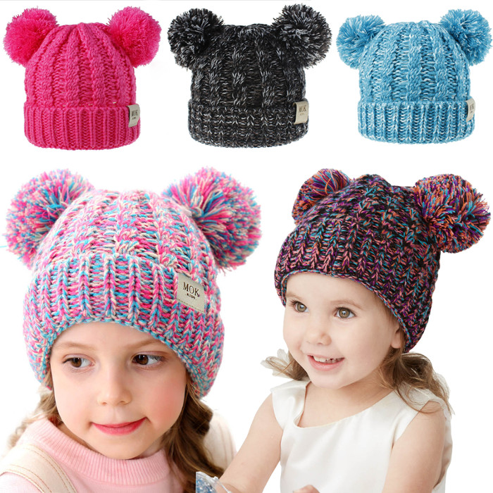 子供 ニット帽 ボンボン2つのシルエットがとても愛らしい 柔らくてちくちくしないキッズ ベビー マタニティ キッズファッション 帽子 ニット帽