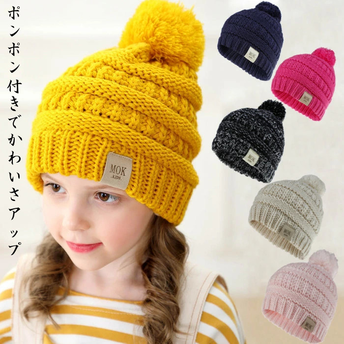 子供 ニット帽 ボンボンシルエットがとても愛らしい 柔らくてちくちくしないキッズ ベビー マタニティ キッズファッション 帽子 ニット帽