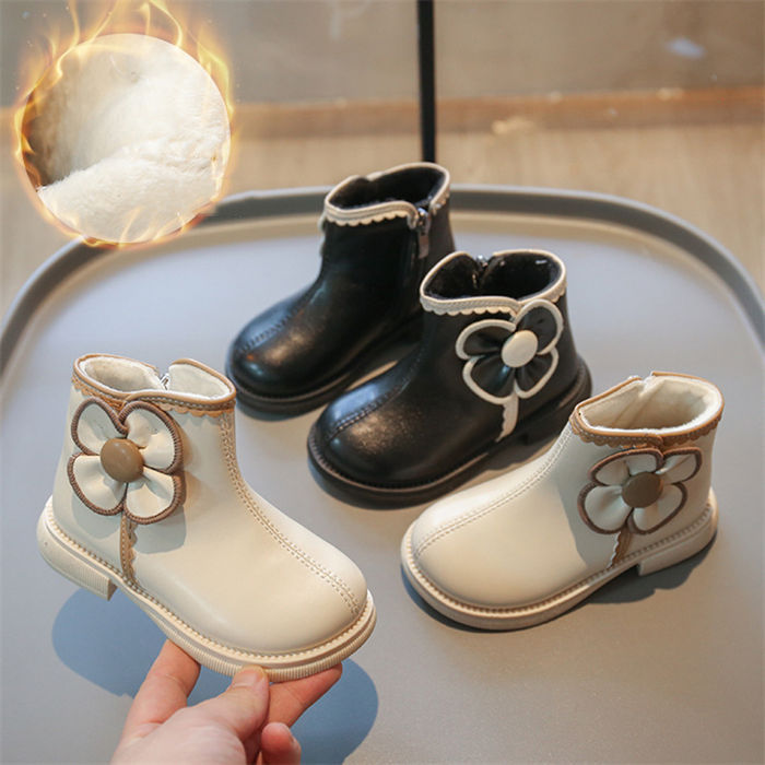ショートブーツ キッズ ジュニア 子供靴 子ども ローヒール 女の子 花 歩きやすい スノーブーツ 可愛い 裏起毛 防水 防寒 裏ボア