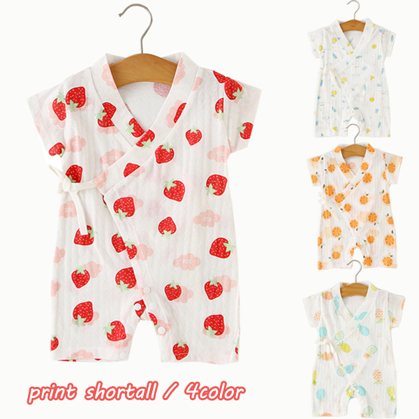 キッズ ショートオール 赤ちゃん カバーオール ロンパース 半袖 夏 春 女の子 股下ボタン付き 子供服 薄手 新生児服 前開き