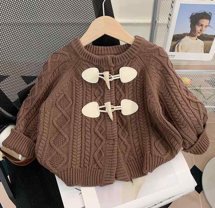 ポンチョ風 ニットカーディガン ケーブル柄 セーター 秋冬 新作 子供服 ファッショナブル 韓国 韓国スタイル お洒落 可愛い