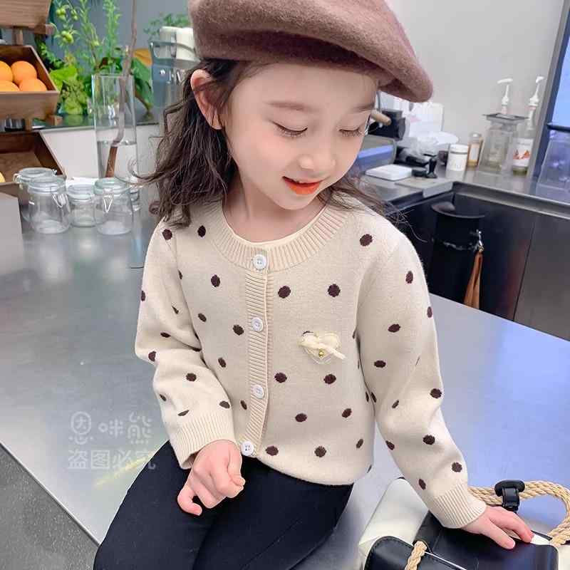 ニットカーディガン ジャケット 水玉 トレンディ 秋冬 新作 子供服 ファッショナブル 韓国 お揃い 姉妹 幼児 保育園 幼稚園