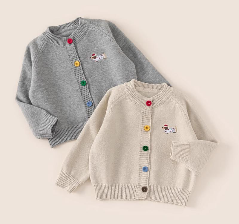 カラフル ボタン カーディガン ワンポイント ダックスフンド 秋冬 新作 子供服 ファッショナブル 韓国 韓国スタイル お洒落