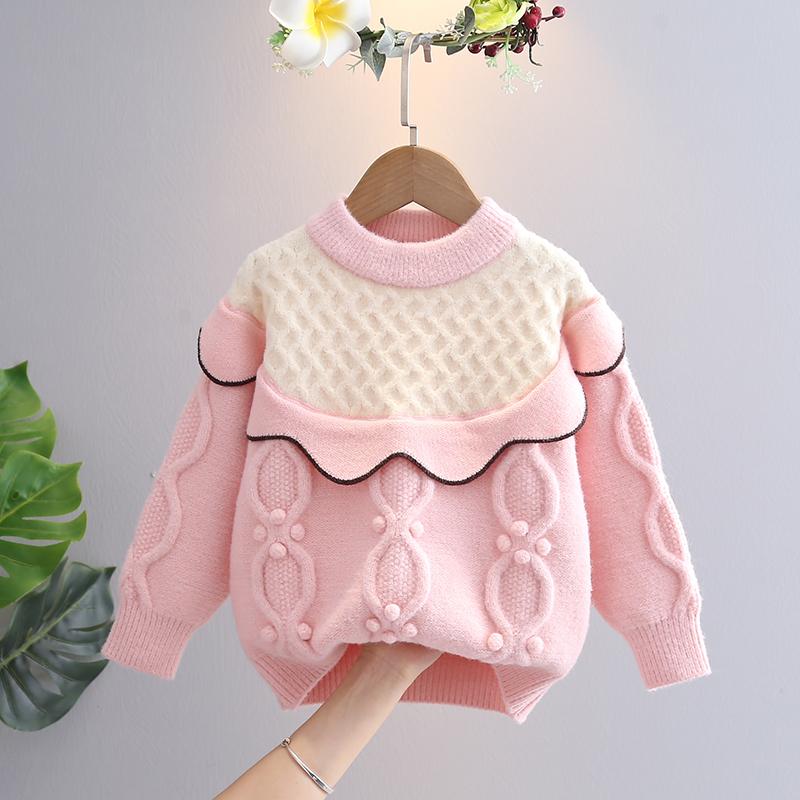 ルーズ ニットプルオーバー 柄 セーター ピンク 秋冬 新作 子供服 ファッショナブル 韓国 幼児 保育園 幼稚園 小学生 学校