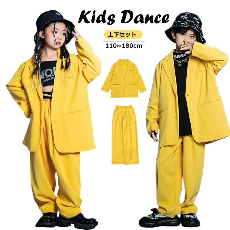 子供服 ヒップホップ スーツセット イエロー ジャケット ジャズ ダンス衣装 セットアップ フォーマル 長袖 発表会 イベント キッズ ダンス衣装 人気 スーツ ジャケット ファッション