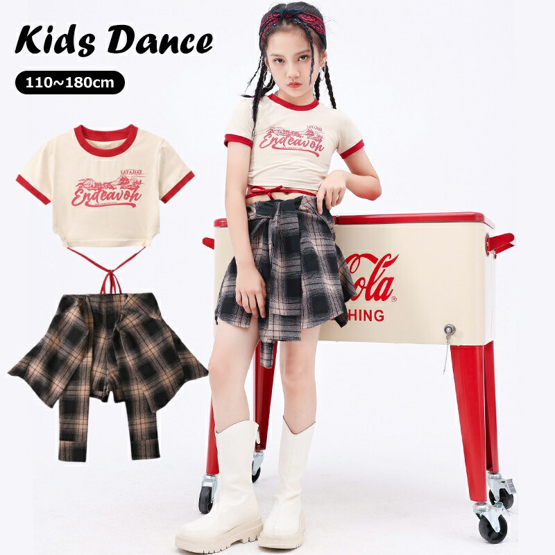 キッズ ダンス衣装 人気 ダンス チェック柄 キュロットトップス 可愛い ファッション 大きいサイズ ファッション 子供 ダンス 舞台 舞台用 ヒップホップ 110 120 130 140 150 1