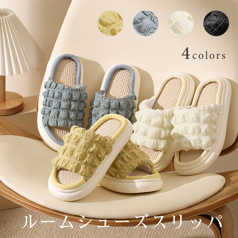 ルームシューズ 夏用 スリッパ かわいい おしゃれ感 たっぷりの夏用ルームシューズ レディース 室内 麻 無地スリッパ 室内履き ベランダ 室内用