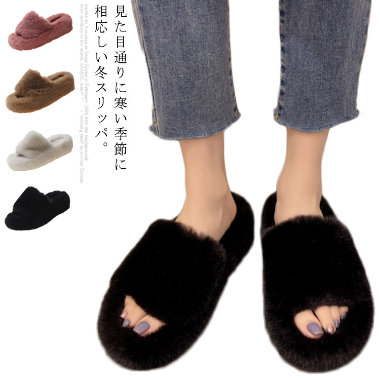 サンダルスリッパ レディース ふわふわ ルームシューズ かわいい スリッパ もこもこ 秋冬 あったか 暖かい おしゃれ 室内 履き 柔らか 防寒 保温 軽量 女子会 室内履き