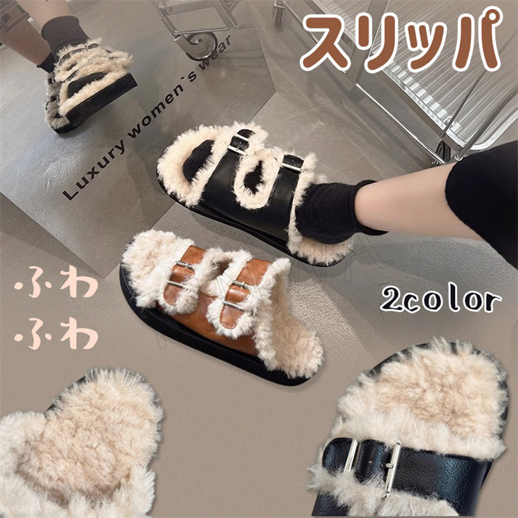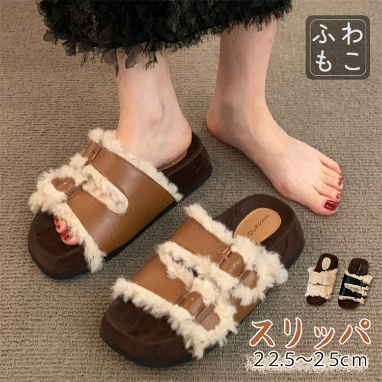 スリッパ かわいい ムートン フェイクファー 冬 おしゃれ 暖かい ふわふわ ルーム シューズ 室内履き