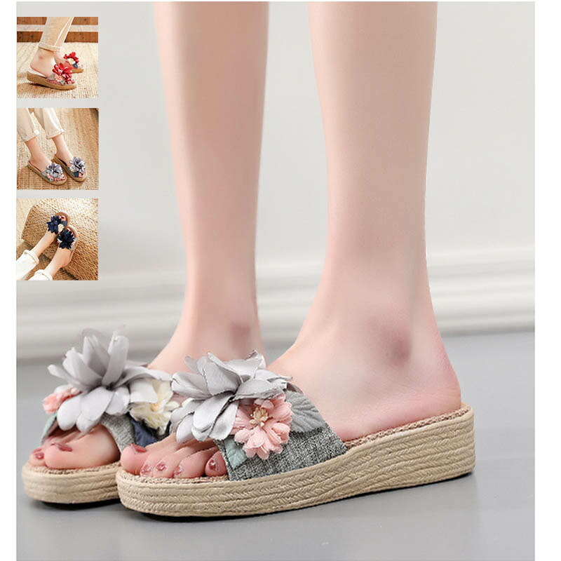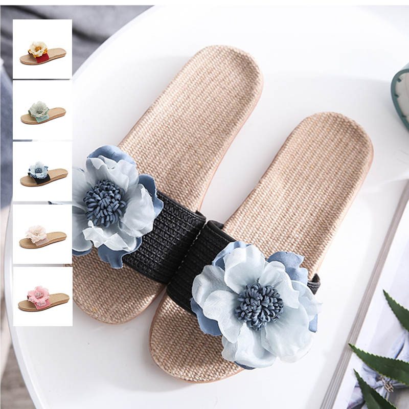 大人気 室内 スリッパ 春 夏 レディース 麻 ジュート 花飾り サンダル かわいい リネン 春夏秋用 洗える 来客用
