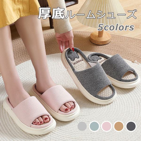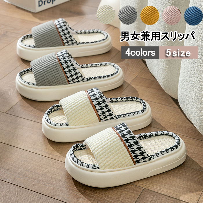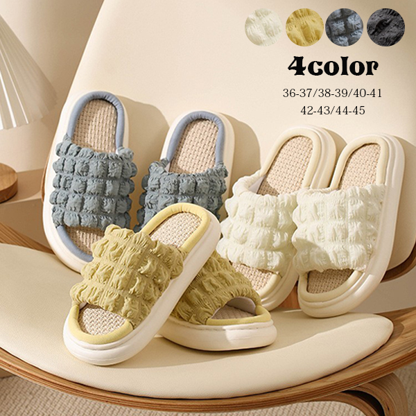 おしゃれ感たっぷりの夏用ルームシューズ 室内 麻 無地 静音 柔らかい カップル 滑りにくい 4cm 冷え性対策