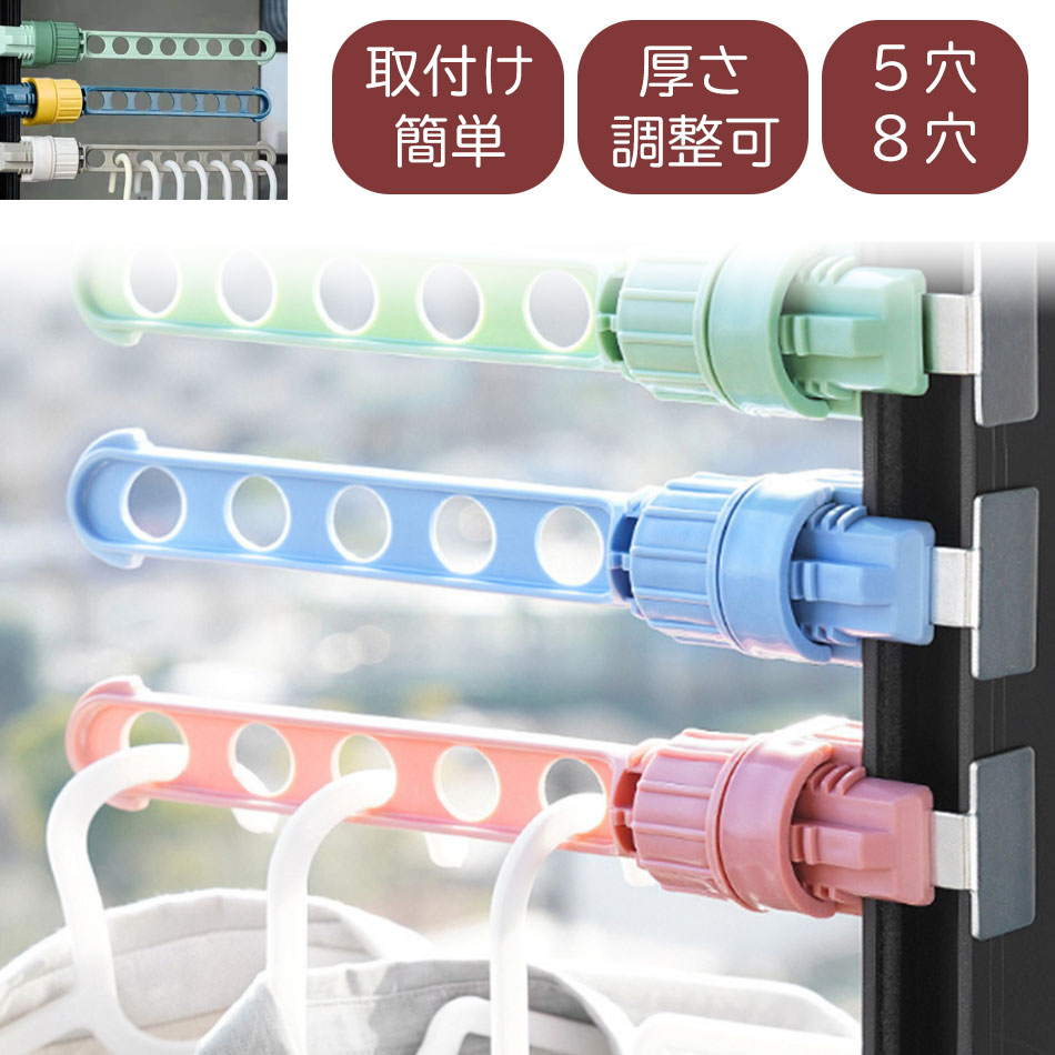 ハンガー掛け 5穴 8穴 2個セット ハンガーバー ハンガースタンド ハンガーラック ハンガーポール 3色 ピンク ブルー グリーン グレー オリーブ