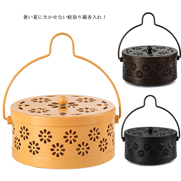 蚊取り線香ホルダー スチール 防虫 携帯 キャンプ蚊取り線香入れ おしゃれ 持ち運び 鉄製 アウトドア インテリア ブラック ブルー イエロー ブラウン ブラシ付き