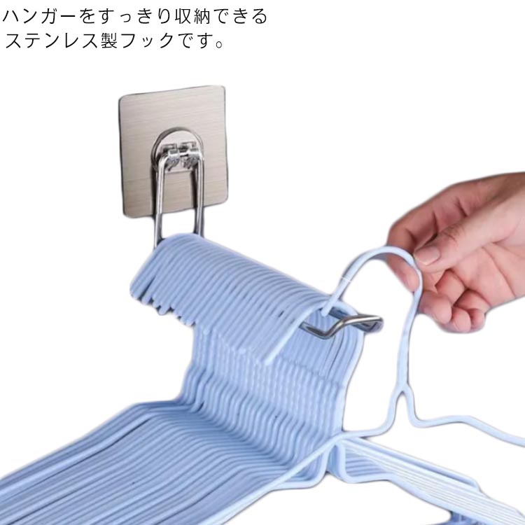 ハンガー 収納ラック ステンレス製 折りたたみ フック ハンガー収納 壁掛け 壁付け 洗濯機 ウォール 粘着フック シンプル おしゃれ スリム ハンガー収納ホルダー ランドリー ベランダ