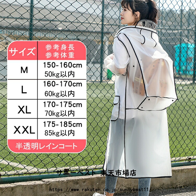 半透明 ロング丈レインコート リュック対応 おしゃれ レインポンチョ 軽量 可愛いレディースファッション レインウェア レインコート