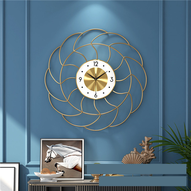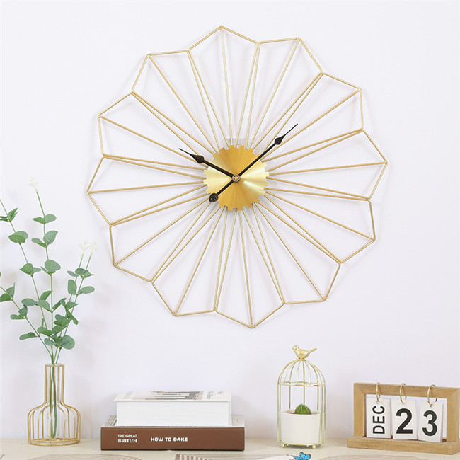 ゴールド掛け時計直径60 放射禅定に伸びたワイヤーのクリスタルギフト プレゼント キッズルーム 子供部屋 寝室 リビング 店舗 おしゃれ 北欧 ウッド シンプル高級感溢れるポリゴンライン新生