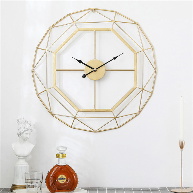 ゴールド掛け時計直径60cm 放射禅定に伸びたワイヤーのクリスタルギフト プレゼント キッズルーム 子供部屋 寝室 リビング 店舗 おしゃれ 北欧 ウッド DIYシンプル高級感溢れるポリゴンライン新生