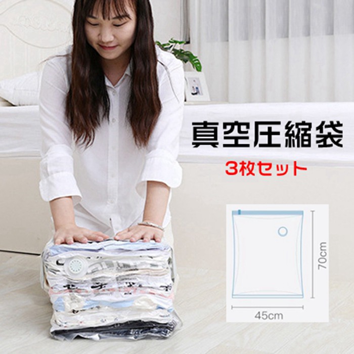 真空圧縮袋 3枚セット 衣類圧縮袋 布団圧縮袋 省スペース 手巻き 手押し 枕 寝具 毛布収納 防湿気 防埃 防カビ 防虫 繰り返し利用可能 引越し 旅行 出張 掃除機不要