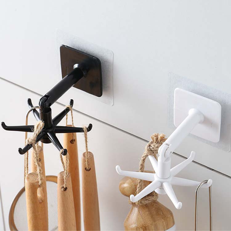 ミニフック 4個入れ 6爪収納フック 多機能 強力粘着 家庭用 壁傷つけない 吊り下げ ハンガー 360°回転折 鍵かけ バス ルーム キッチン 玄関 収納フック