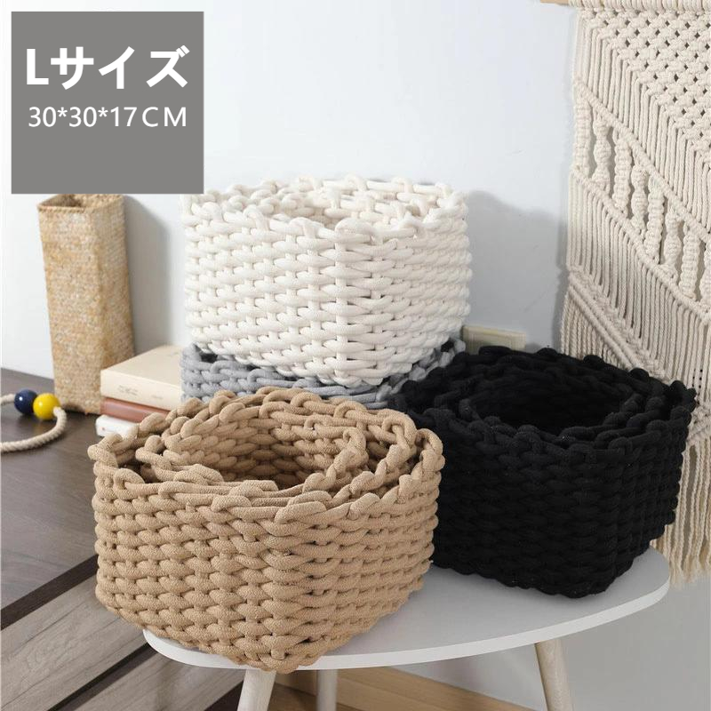 収納 バスケット L コットン 籠 カゴ かご ロープバスケット かごバスケット カゴ 小物入れ 小物いれ ロープ 小物整理 デスク整理 タオル 収納かご 収納バスケット c-shouna-5618-