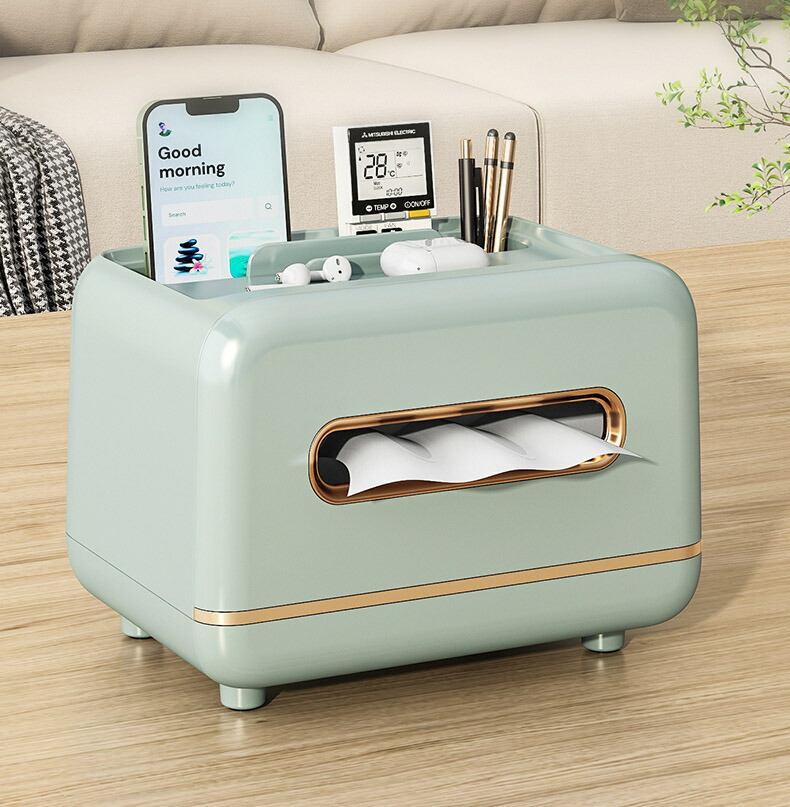 ティッシュボックス 化粧品収納 小物収納 小物入れ 分格設計 ホワイト グリーン 卓上収納 ティッシュ リモコンケース 北欧風 リビング 寝室 テーブル 北欧 おしゃれ 卓上 多機能収納 -