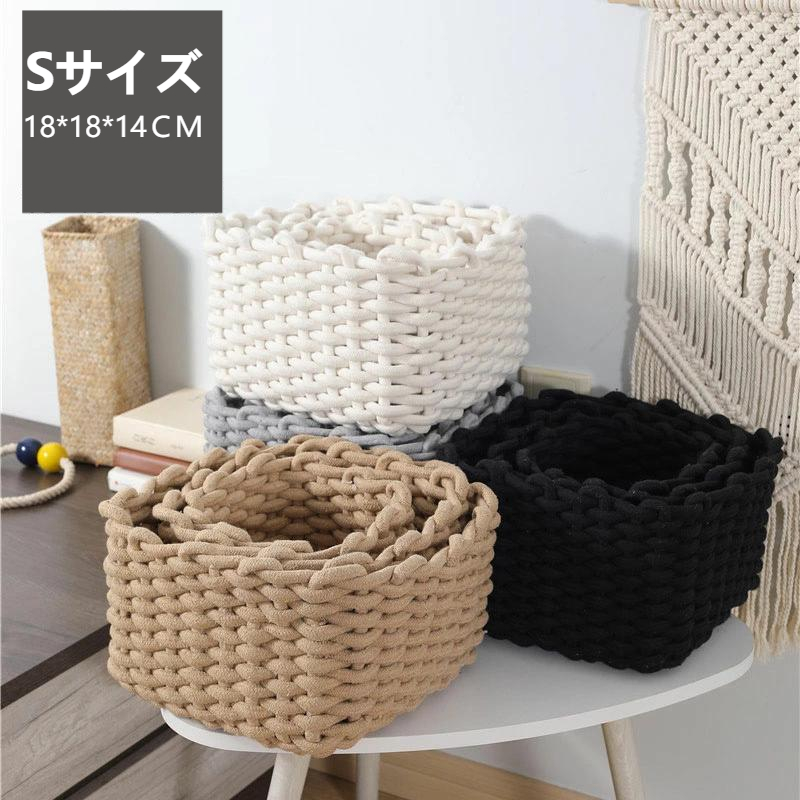 収納 バスケット コットン 籠 カゴ かご ロープバスケット かごバスケット カゴ 小物入れ 小物いれ ロープ 小物整理 デスク整理 タオル 収納かご 収納バスケット --5618-