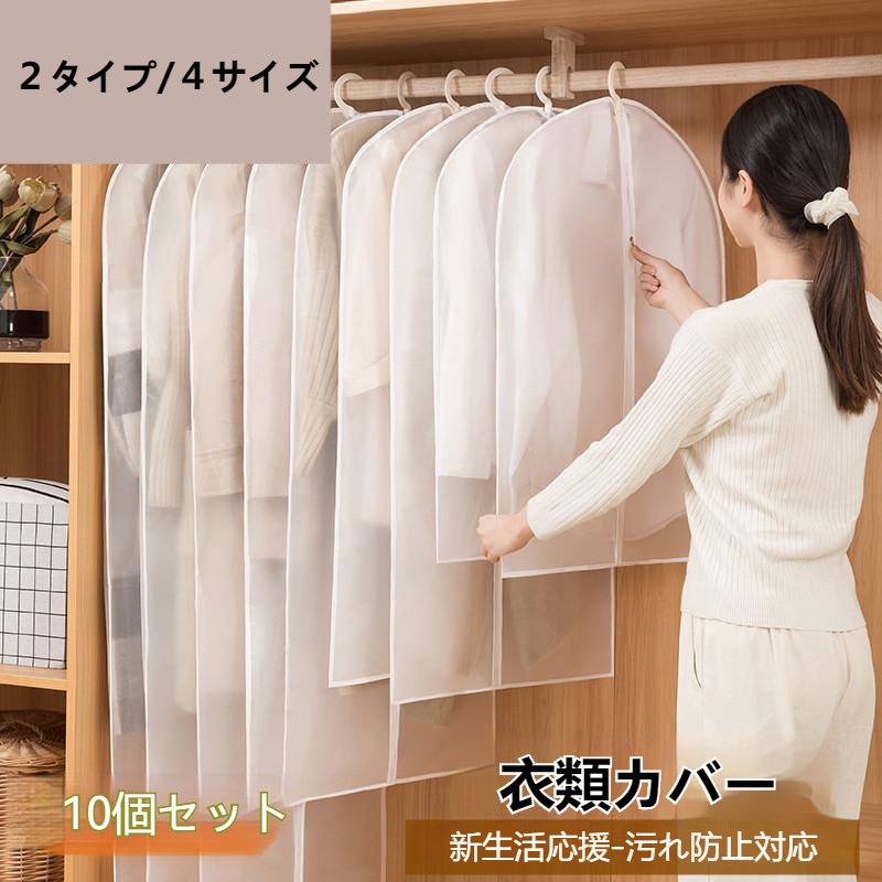 衣類カバー 10枚組 服収納 繰り返す使用可能 服カバー 洋服カバー ダストカバー半透明 衣類収納袋 衣類収納ケース 防虫 6スタイル 4サイズ対応 防塵 防湿 半透明カバー ロング 衣類長