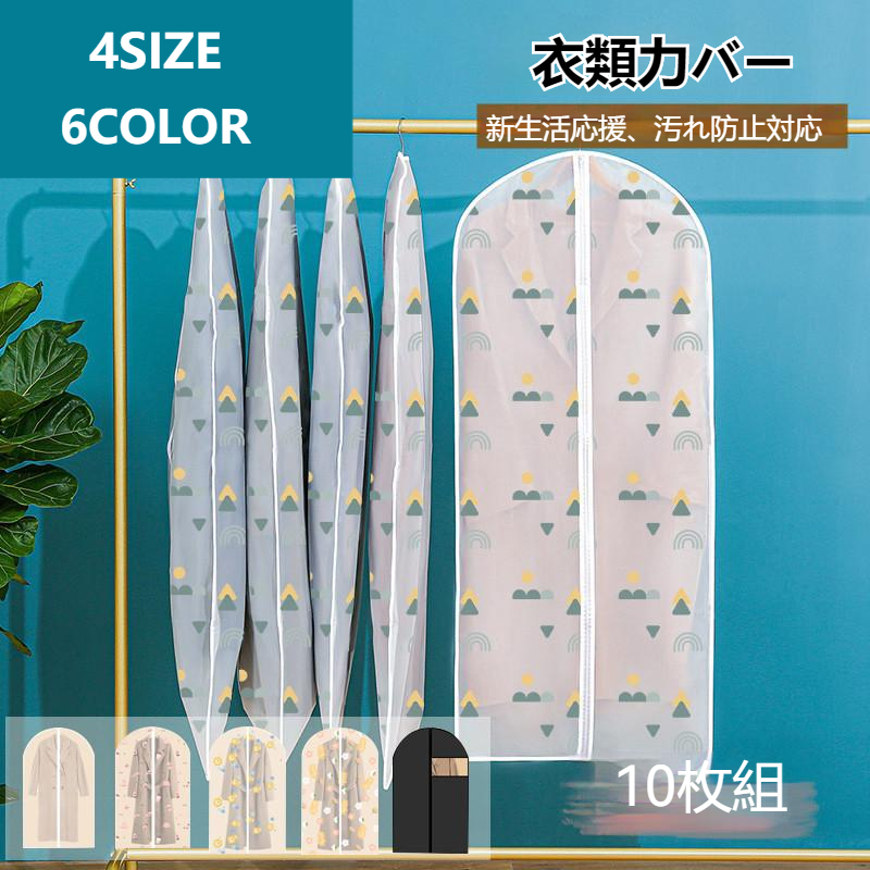 衣類カバー 10枚組 服収納 繰り返す使用可能 服カバー 洋服カバー ダストカバー半透明 衣類収納袋 衣類収納ケース 防虫 6スタイル 4サイズ対応 防塵 防湿 半透明カバー ロング PEVA 衣類長