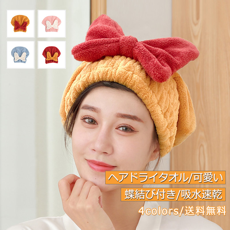 シャワーキャップ レディース ドライキャップ 蝶結び付き 柔軟性 吸水性 速乾性 可愛い ふわふわ お風呂上がり 温泉 洗顔 バス用品 おしゃれ