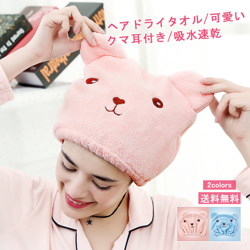 シャワーキャップ レディース ドライキャップ 動物柄 厚手 クマ耳付き 吸水性 速乾性 可愛い ふわふわ 風呂 温泉 洗顔 バス用品 おしゃれ