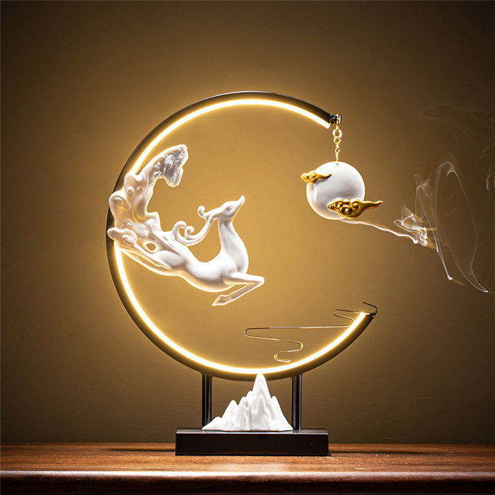 LEDライト台座倒流香 香炉 お香ホルダー 流川香 香炉用品 セラミック 置物 開運 風水 ドラゴンボール お香立て 幻想 インテリア 置物 香り 仏具 煙 煙逆流 瞑想 幻想 プレゼント 贈り物 ご