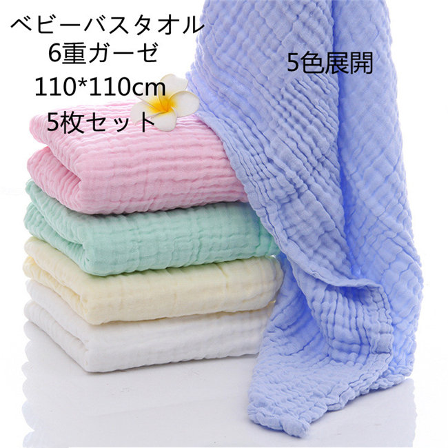 5枚組 ベビーバスタオル ガーゼ バスタオル ガーゼケット夏用 6重ガーゼ 110*110 天然有機コットン 湯上り 沐浴ガーゼ ドラーケット 吸水性 瞬間乾き 沐浴 おすすめ 湯上り バスタオル