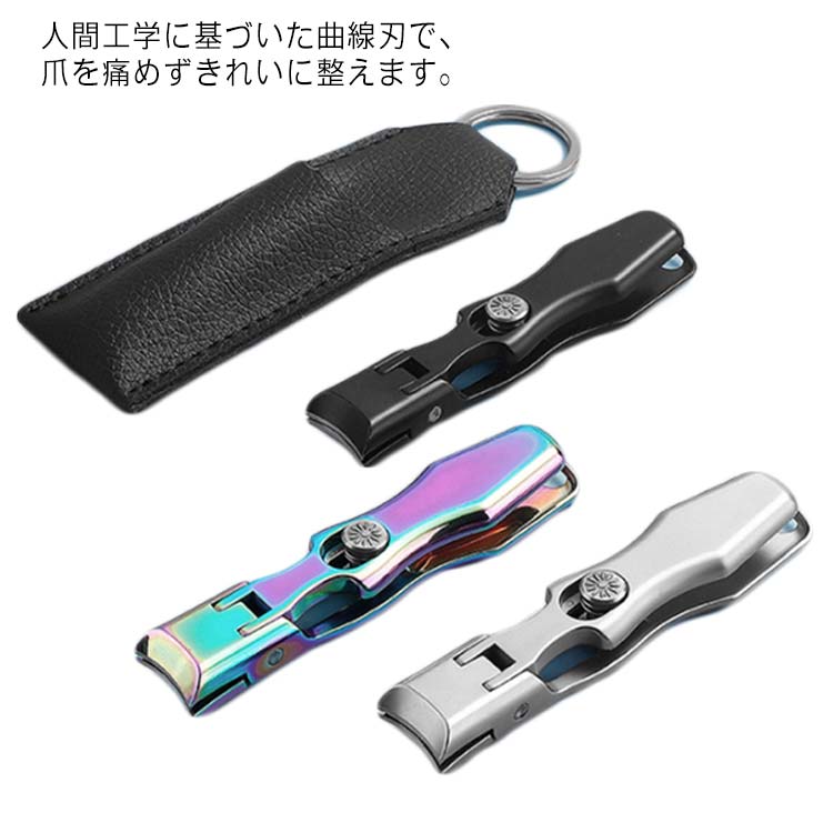 爪切り カバー付き 飛び散り防止 滑し止め爪切り 手足用 ステンレス製 滑し止め爪切り レザー収納袋付き