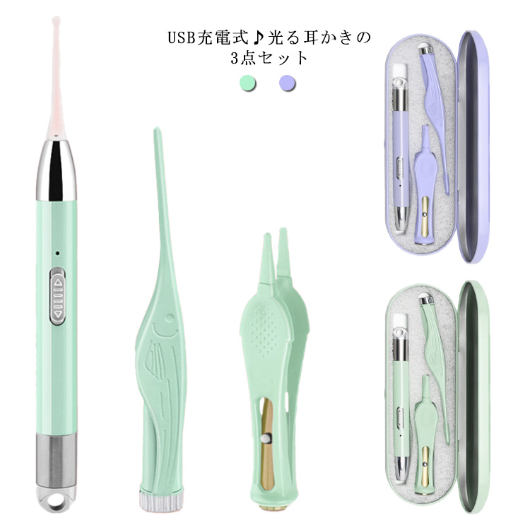 ライト付き光る耳かき ピンセット3点セット 耳掃除 介護耳かき 人気医薬品 コンタクト 介護 衛生日用品 衛生医療品 耳掃除用品 耳かき