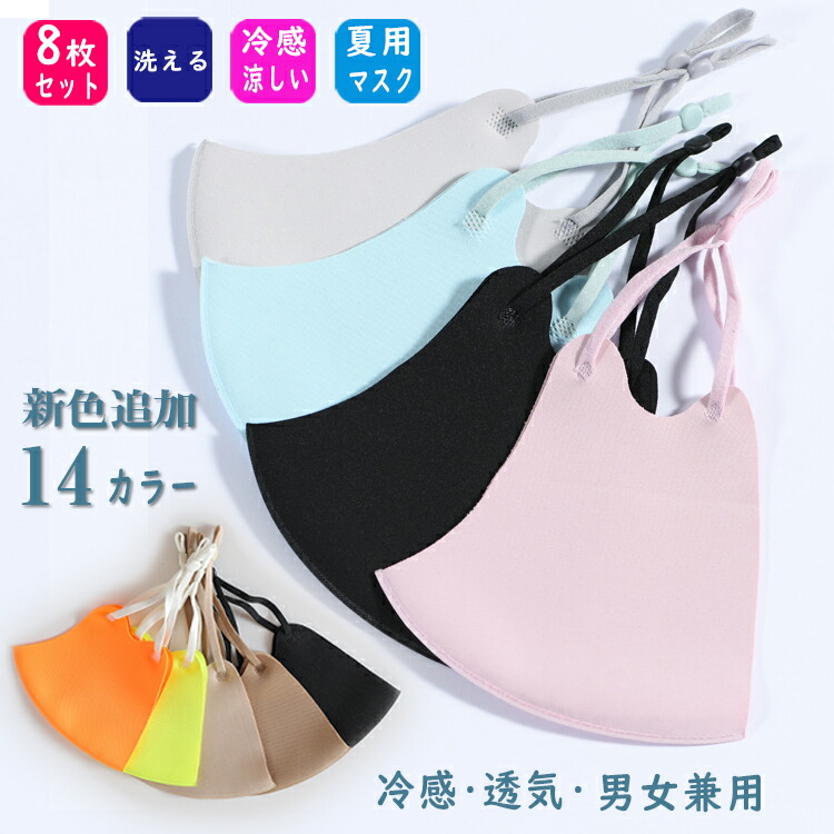 紫外線遮蔽率99% UPF50+ 8枚入 アイスシルクコットン 接触冷感 ひんやり マスク 接触冷感 冷感 フェイスマスク 夏用 ひんやり マスク