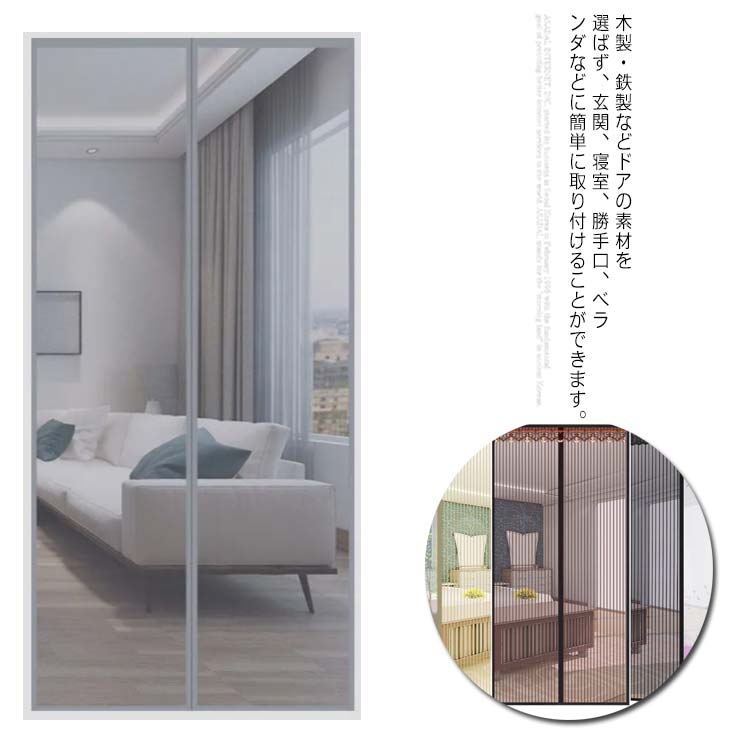 全3色 取り付け簡単 網戸カーテン 蚊帳カーテン マグネット式 虫よけ 換気対策 工事不要 幅3サイズ80 90 100cm 高さ210cm 網戸 快適 ベランダ ドア 猫 犬 ペット防止 蚊 省エ